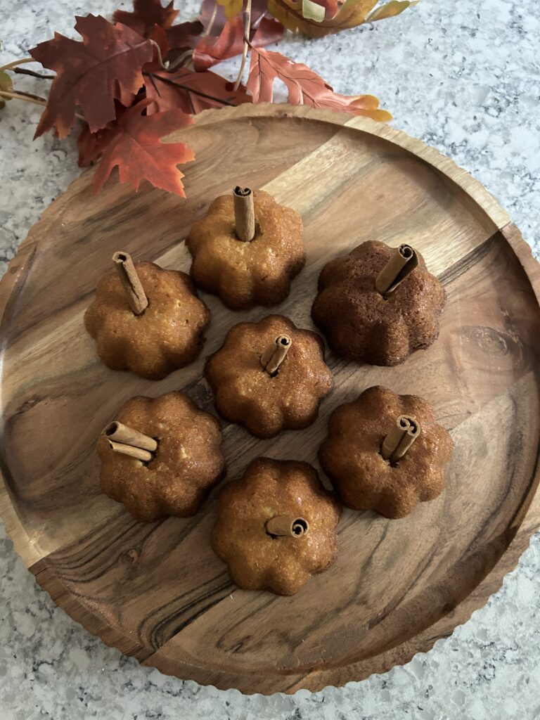 - Mini pumpkin bundt cakes are adorable for fall treats or for a Thanksgiving dessert table. Just use a mini bundt cake pan like this one and add a cinnamon stick to the center to resemble a pumpkin. NOTE: you may need to reduce the cooking time to 30 min. Check the cake to see if they are done by inserting a tooth pick or knife and bake accordingly.